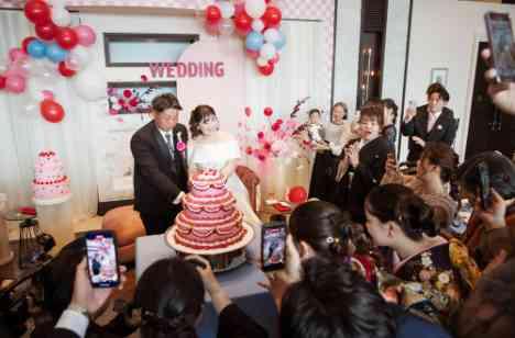 ご披露宴会場は1日で一番過ごす時間が長く、たくさんのお写真が残ることを踏まえて、とにかくご披露宴会場の装飾をこだわったおふたり。指名フラワーコーディネーターからの提案も踏まえて、ご新婦様のお好きな赤、ピンク、水色を中心とした個性溢れる海外チックでポップな装飾に仕上がりました。おふたりらしさ全開の唯一無二の会場になりました。