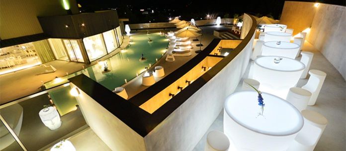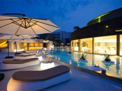 夜になるとガーデンは鮮やかにライトアップされ、内照式の家具や、パーティーホールの光がプールの水面に反射し、幻想的な雰囲気が醸成される。気候の良い時期にはガーデンでのデザートビュッフェなど、様々な演出が楽しめる。
