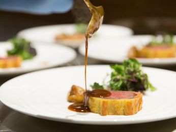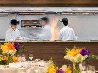 「 料理こそ笑顔になれる最高のおもてなし 」 会場に併設されたオープンキッチンからの 音・香り・臨場感、全てがゲストの期待感を 高め、絶妙のタイミングでご提供します