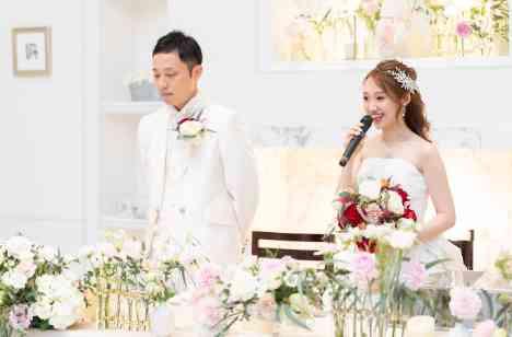 今回は、ゲスト30名様で5テーブルのアットホームなご披露宴の形式でした。人数様が少なくてもテーブルレイアウトなど工夫して、少ない人数であっても広すぎない披露宴会場でございます。打合せの中で予定より人数が減ってしまった場合でも、一軒家全て貸切でございますので、少人数様専用の小さめの会場もご用意可能です。