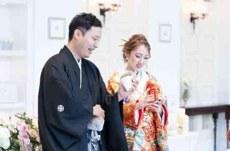 ゲストに受付時に衣装当て投票を行っていただき、お色直しの和装の色当てクイズを行っていただきました。正解者発表のプレゼント抽選の際に、携帯電話で電話をかけて、音がなった方にプレゼントをいたしました。少し変わった方法でお呼び出しをすることで、ゲストも携帯を握りしめて、ワクワクお待ちいただいておりました。