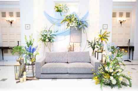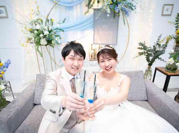 お二人のお名前の漢字や、お二人がよくおっしゃってくださる『出会えたことが運命なんです』という言葉から、新郎様を『青い空』新婦様を『太陽』に見立ててテーマを提案させていただきました。 テーマに合わせて装飾も空を連想させる『青』と太陽を連想させる『黄色』でご用意をさせていただきました。 お二人が手作りしてくださったアイテムも、装飾の色味に合わせて下さり、統一感のあるオシャレな空間となりました。