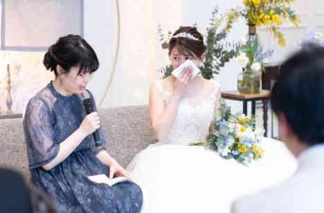 普段であれば、マイクスタンドを立ててスピーチをする友人スピーチ。特に大切なご友人様にお願いをされているからこそ、お互いをしっかりと感じてもらえる距離感でスピーチをして頂きました。お二人のメイン席がソファ席だったので、新婦様のすぐ隣に座って頂き、より近い距離で想いを感じて頂けるお時間になり、スピーチの後は思わずギュッとお互いにハグをして頂ける温かい空間となりました。