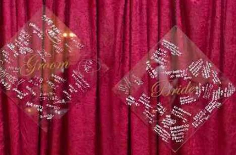 来ていただいた一人ひとりにしっかり想いがあるお二人だからこそ、披露宴で「おめでとう」と「ありがとう」を伝え合える時間を大切にしました。お二人の背景にはゲストの皆様から頂いたメッセージボードが飾られています。