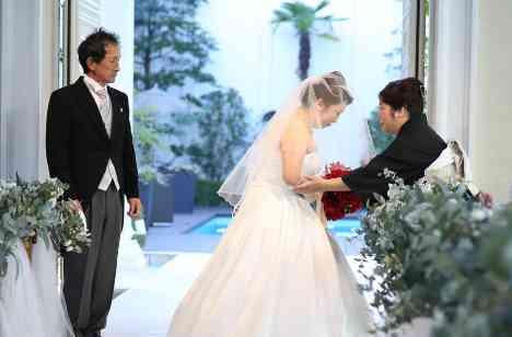 新婦様がお色直しのエスコート相手に選ばれたのは闘病生活を同じ病室で共にした方。辛い治療も一緒に乗り越え一緒にご病気を克服いたしました。 この方がいらっしゃらなければ乗り越えられなかったことを一生懸命ご自身の言葉で伝えていただきました。 見守るゲストだけでなく、司会者やスタッフも涙が止まらない瞬間でした。