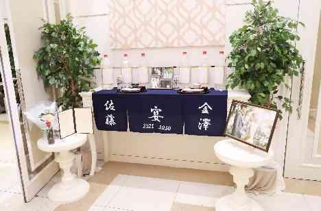 新郎新婦様の大好きなものと言えば日本酒!おふたりのデート場所でもある居酒屋さんをイメージしておふたりのオリジナル暖簾をご用意♪新郎新婦様らしいウェルカムスペースにゲストも思わずほっこりしてしまうようなウェルカムスペースの完成です!ご結婚式当日にはフリータイムにお写真を残すゲストも多数いらっしゃり、市新郎新婦様がこだわり抜いたアイテムは大活躍となりました!