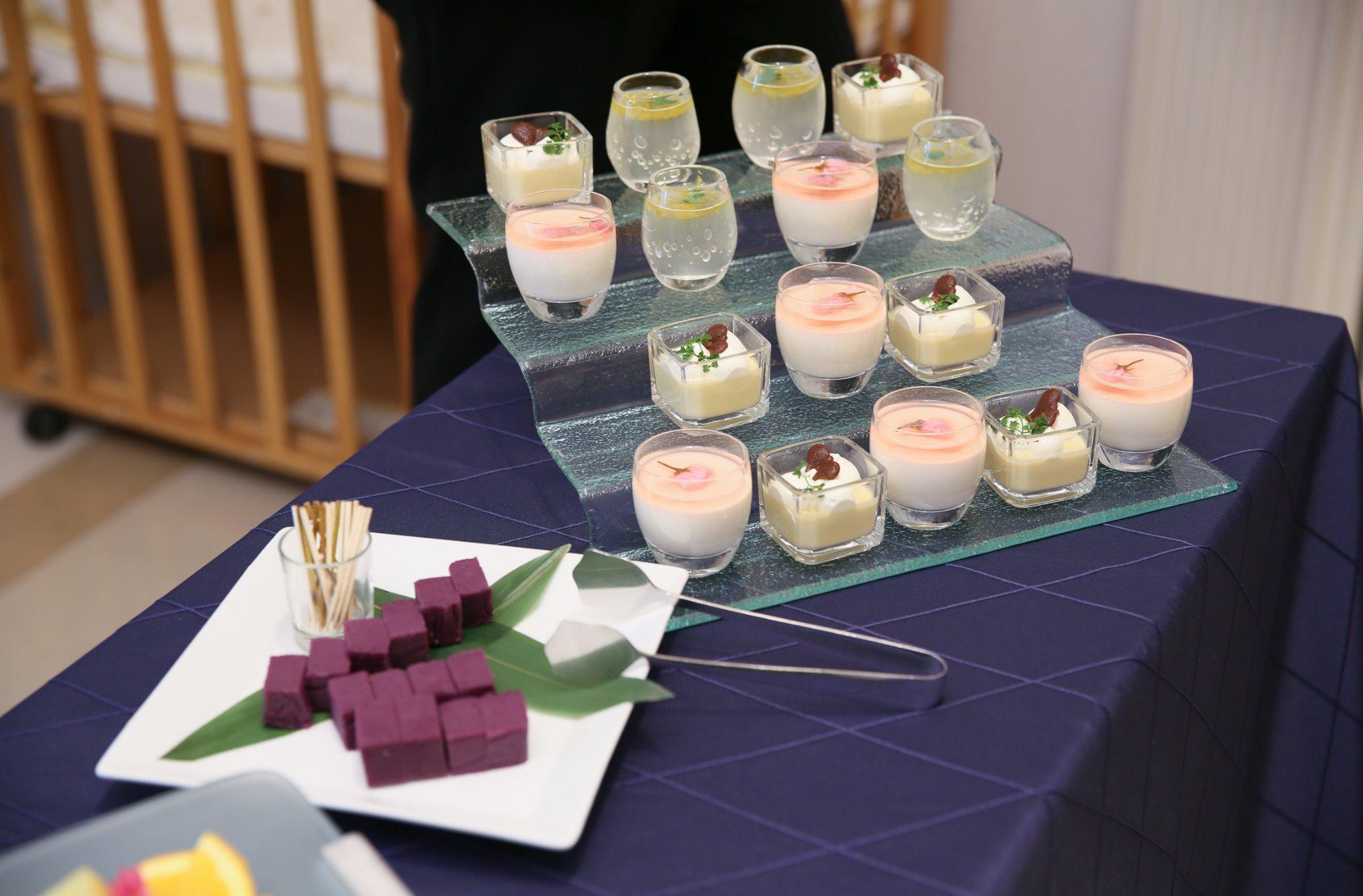 披露宴の後半にご用意したのは、和装のおふたりの装いに合わせた"和ビュッフェ"♪シェフとパティシエにオーダーしたお茶漬けビュッフェや桜の塩漬けをトッピングした和スイーツなどがズラリ!女性だけでなく、男性ゲストやご高齢のご親族様も楽しめる内容に、結びまでゲストをわくわくさせる演出になりました!