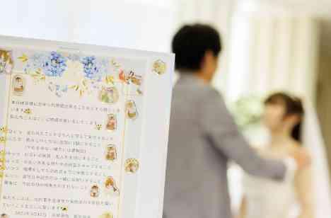 おふたりが選んだ挙式のスタイルは「人前式」。ご参列頂いた皆様の前で、おふたりがご用意された【誓いの言葉】をご披露いただき、承認の拍手をいただきます。おふたりは「7つの誓い」をご用意され、ふたりらしさが感じられる内容に、ゲストの皆様は温かな雰囲気で見守ってくださっていました。対面式のチャペルは、祭壇からもゲストの表情や様子がよく見えるので人前式にふさわしい造りとなっている点も喜ばれていました。