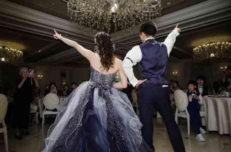 お色直しをしてカラードレスとタキシードをカジュアルダウンさせた状態でのご入場♪実はここで、大好きな楽曲でのダンスをしながらでの入場を計画していました♪おふたりらしさ、がテーマな決子式だからこそのBIGイベント!決めポーズまでしっかり決めて、いよいよ入場です!入場の際はゲストからも大歓声が…!あっと驚くような演出と共に楽しく実施できる演出でした♪