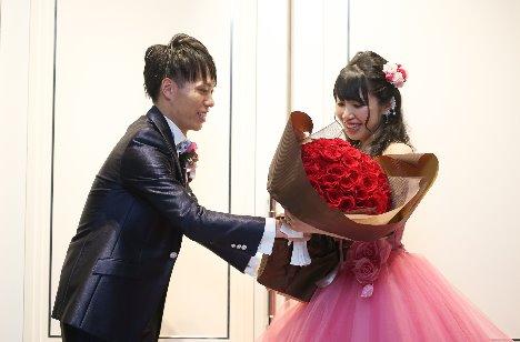 白をベースにパープルや水色、ピンクのお花で彩った大人可愛い披露宴会場でパーティがスタート♡美味しいお料理やゲストとのお写真タイムなど、終始和やかに進んでいきます。そして、結びのお時間。新郎様から新婦様にサプライズでプレゼントされたのは…真っ赤なバラの花束!44本の赤いバラには”不変の愛を誓う”という意味が込められおり、受け取られた新婦様の幸せそうな笑顔が印象的でした♡