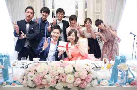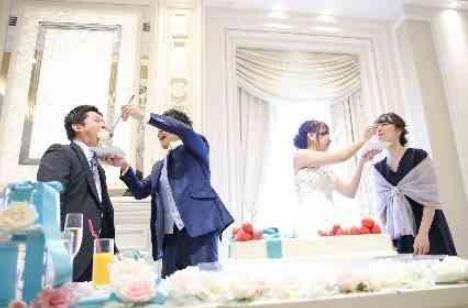 ウェディングケーキの入刀シーンでは、結婚式当日にちょうどお誕生日を迎えたゲスト様へ、バースデーバイトのサプライズでお祝いを!呼び出されたお二人は、とても嬉しそうでした♪また、新郎様がサプライズでお呼びしたゲスト様も、偶然にもアンジェリオン オ プラザTOKYOで結婚式を挙げてくださった、という素敵なご縁もあり、絆の深まるシーンとなりました。