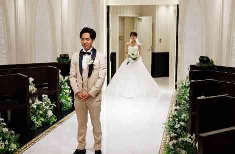当日までウエディングドレスを内緒にしていたご新婦様。いよいよご新郎様にお披露目です♡ 先にチャペルにご到着されたご新郎様もご新婦様の到着をドキドキしながらスタンバイ・・・・。そしてお二人がついにご対面♡ ご新婦様の素敵なウエディングドレス姿にご新郎様も笑みが溢れます♪ お二人の初々しいお姿にほっこりする瞬間でした♡