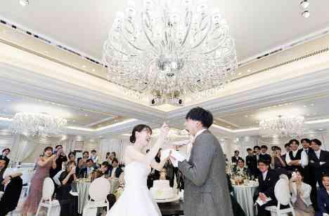 乾杯酒として人気のシャンパン。シャンパンにはとても幸せな由来と特別な意味が込められています。 きめ細やかで綺麗な泡が、グラスの底から水面に向けて昇り続ける様から、「絶え間ない幸せ」を象徴し、グラスに耳を傾けると聞こえてくるパチパチという音が「天使の拍手」と呼ばれる祝福の音だと言われています。普段はなかなかいただく機会の少ないシャンパンは結婚式ならではの特別なドリンクですね!
