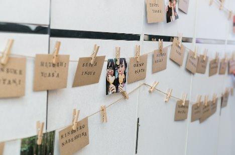 挙式後、ゲストの皆様がご披露宴会場前の貸切スペースへ進まれると…おふたりがDIYされたエスコートカードが!!見た目もお洒落なメッセージウォールに列を作って、ワクワクされながらご自身のお名前を探していらっしゃるゲストのお姿が印象的でした♪封筒の中を開くとお一人おひとり宛のお手紙も入っており、おふたりのご入場まで飽きさせないサプライズ演出となりました☆