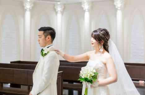 ご結婚式当日…当日初めてドレス姿を見せる『ファーストミート』演出の為、ご新郎様にドレス姿を内緒にしていたご新婦様。お支度が整ったご新郎様がドキドキしてチャペルで待っていると肩をトントン…♡振り返れば美しいウエディングドレスを身にまとったご新婦様が^^ご新婦様の美しいマーメイドドレスにご新郎様も感動されているご様子でした!