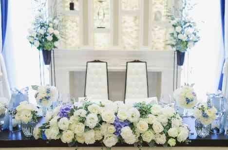 披露宴会場ロイヤルブリティッシュのコンセプトカラー・ロイヤルブルーに合わせて、ホワイトをベースにブルーをポイントに入れ、洗練されたコーディネートを創り上げました。 カラードレスのお色味も揃え、一日を通して華やかで上質な雰囲気をゲストの皆様にもご体感いただきました♡