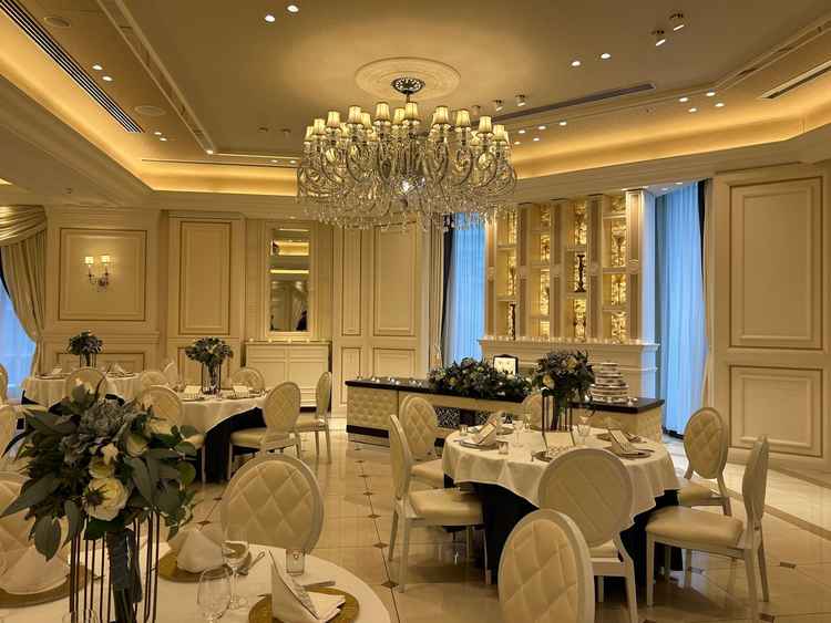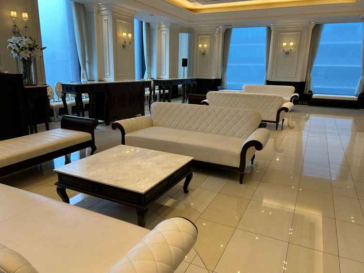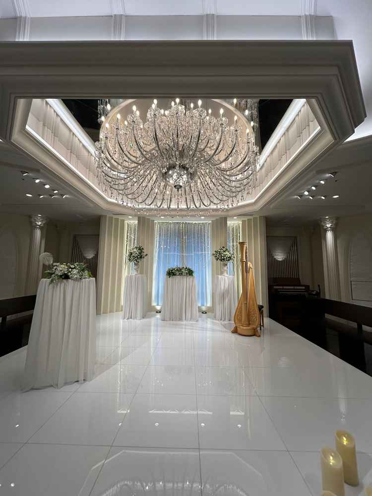 ビル内の会場であることが気にならない広さ、上質な雰囲気でした。ホワイトチャペルですが真っ白というよりは温かみのある白、木製の椅子など素敵な雰囲気でした。