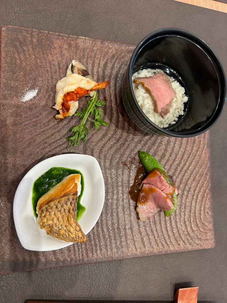 いくら臭い、生物全般臭くて食べられなかった。 お茶漬け米半生硬い。 真鯛、味付けがしょっぱいソースも濃いバランス悪い。 デザート保存冷蔵庫の風味がこべりついてて無理。生クリームも脂っこく最低グレード