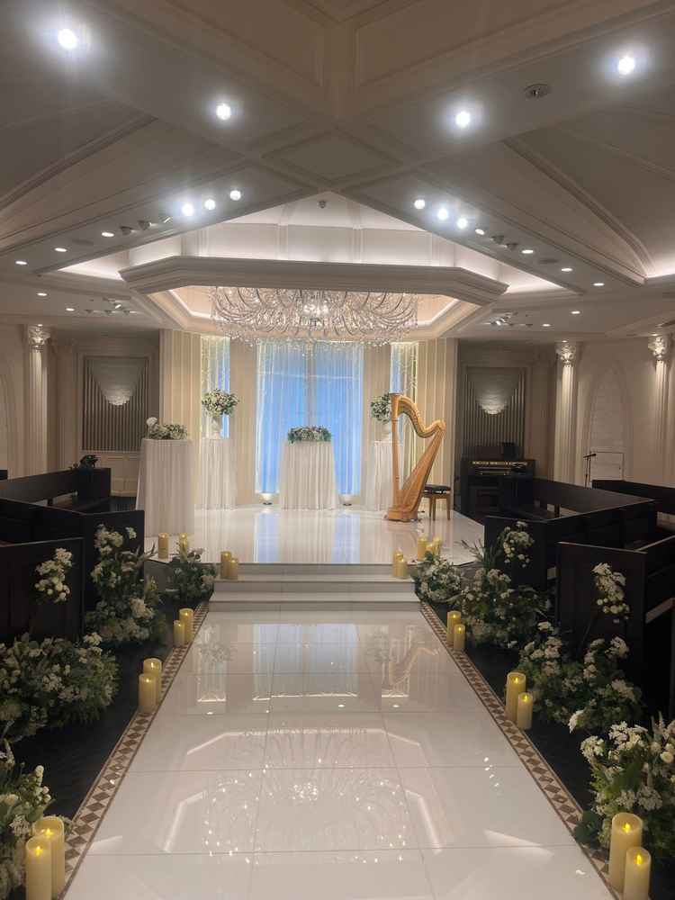 挙式会場、披露宴会場共に、ゲストの皆様が新郎新婦の姿を見られるようにという想いが伝わるようなデザインをしていました。 また待合室や披露宴会場は広く、入った瞬間思わず声が出るくらい煌びやかでした。 装飾用のお花を最低限にしたという会場をたまたま見学できましたが、披露宴会場が豪華なので、物足りない等思うことが全くありませんでした。