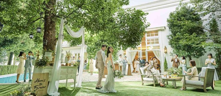 - ベイサイド迎賓館は2000坪の敷地に2つの貸切邸宅があり、どちらにもプライベートガーデンがございます。それぞれが違った雰囲気の会場となりますので、お2人の好みやゲストの方との楽しみ方に合わせて会場を選んでいただくことができます。ぜひブライダルフェアで体感してください。スタッフ一同心よりお待ち申し上げております。