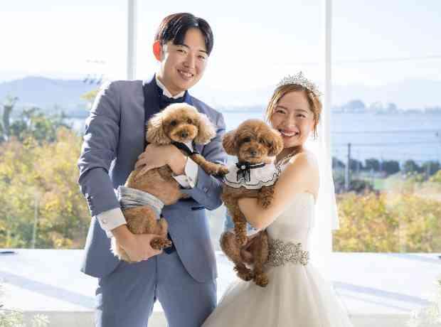 リングドックとして挙式会場内でワンちゃんに過ごしていただくことはもちろん、ベイサイド迎賓館は全館貸し切りだからこそ、披露宴会場の中でもワンちゃんと一緒に過ごすことができます。 結婚式の時間で大半を占めている披露宴中も、寂しくお留守番ではなく、お二人やゲストの皆様と一緒にお過ごしいただくことができます。