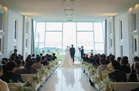 白を基調とし、窓の向こうに広がる海を望むオーシャンビューの明るいチャペルは、祭壇までの距離が近く、新郎新婦様の表情や誓いの瞬間が参列者からもよく見えるため、新郎新婦様が大切にされていたゲストに想いを伝えるというポイントが叶いました。 披露宴とのメリハリをつけるため、厳かでしっかりしたキリスト教式を行いました。 落ち着いた雰囲気の中で心に残る挙式となりました。