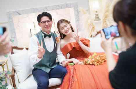 挙式後の披露宴は、演出を詰め込みすぎず、ゲストとの歓談時間を大切にした進行に。 距離感が近くなるソファー席にし、会場内には終始あたたかな会話と笑顔が広がり、写真撮影も自然と生まれる和やかな雰囲気に。久しぶりの再会を楽しむ新郎新婦様の姿が印象的でした。 「ゆっくり話せて嬉しかった」「一緒に過ごす時間が長くて特別感があった」と、ゲストからも喜びの声を頂きました。