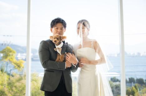 とにかくわんちゃんを大切にされていたお二人だからこそ、ゲストのみんなだけではなく、家族の一員である わんちゃんとも同じ空間で大切な素敵なお時間を過ごしていただくために、挙式でリングドッグとして登場してもらいました。全館貸し切りだからこそ、どの場所でも一緒に過ごしていただける特別なお時間となりました。