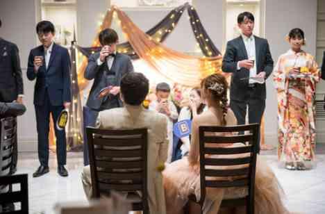 新郎新婦様そしてご家族様が大好きな格付けチェック。年末には必ずみんなで見られるそうで、その格付けを結婚式に再現!全力で考え全力で答える皆様にお二人も大笑い!最後一流ゲストとして残ったのは、数組でしたが皆様が本当に楽しそうに過ごされていたお時間でした。 最後の問題のプロポーズの言葉編では新郎様から皆様の前で再現。とても素敵な空間でした。