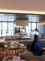 おふたりとゲストの皆様のご縁がこの先ずっと続きますように、と想いが込められ、ひらひらと花びらが舞い積もるような模様を描く大川組子。 日本伝統建築美の白木造りの会場は、和も洋も映える唯一無二の空間。伝統とトレンドを織り交ぜた世界観で過ごす1日。