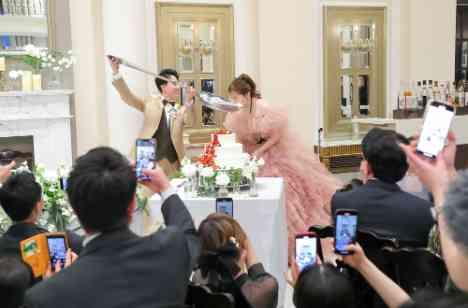 ご披露宴には欠かせないケーキセレモニーですが、ご新郎ご新婦様のファーストバイトに使うアイテムは、なんとご新婦様の顔の倍以上あるおおきなスプーン!ご新郎様にではなく、ご新婦様に大きなスプーンでお召し上がりいただく演出にしたことで、ゲストの皆様からも笑いが起き、身を乗り出して撮影してくださいました!!!