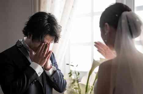 それぞれお仕度が整い、今からファーストミートというタイミングで新郎様がサプライズでお手紙を書いてくださっていたのでプランナーからお渡ししました。お手紙黙読後にファーストミートを行い、それぞれ顔を見合わせた瞬間に感動でお互いに涙が溢れました。その後おふたりはハグをされており、本当に素敵なお時間でした。
