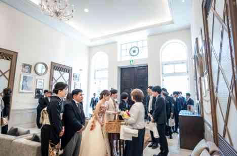 結婚式に参加していただいたゲストおひとりおひとりに、「最幸の一日を一緒に過ごしてくれてありがとう」と感謝の想いを込めてプチギフトをお渡しになりました。完全貸切の会場だからこそ、ロビーでゆったり今日の結婚式の感想をお話ししたり、お写真を撮ったりと、結びまで幸せ溢れる時間を皆様とお過ごしいただきました。