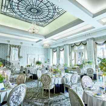 豪華なシャンデリアがきらめく大階段、日本庭園を有するクラシカルな一軒家型パーティ会場など。和と洋が融合した空間美を舞台にドラマティックなウェディングを叶えて