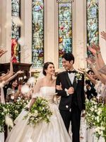 歴史ある白壁の町に溶け込むよう、壁や装飾など細部にまで本物にこだわる和風の屋根瓦が印象的な外観。西洋建築と、和の意匠を活かす。祭壇には、天井から自然光が降り注ぐようにとトップライトが設けられているのですが、柔らかな光の中で挙式を光を浴びるお二人の姿がとても素敵。