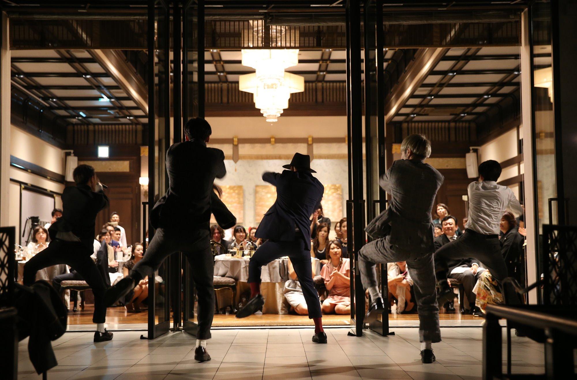 新婦様のご兄弟の友人グループによるダンスパフォーマンス!とてもレベルの高いダンスにゲストの皆様も大盛り上がり!この後、新郎様もサプライズでダンスのご披露され、新婦様もとても喜んでいらっしゃいました!