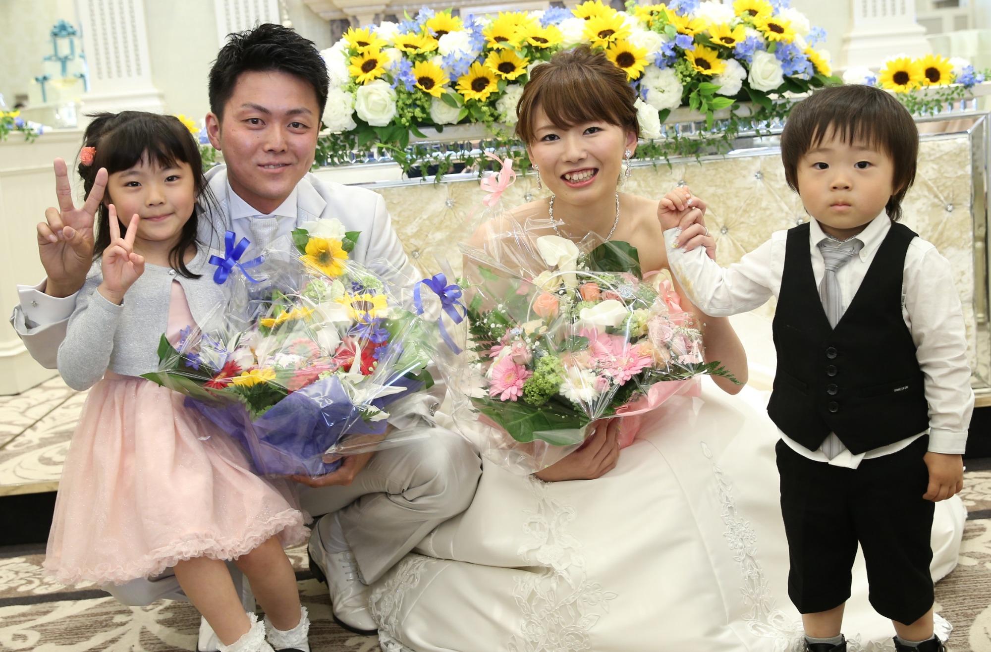 お子様ゲストから新郎新婦様に向けたサプライズ花束のプレゼント!お子様からのサプライズに新郎新婦様とても喜んでいらっしゃいました☆
