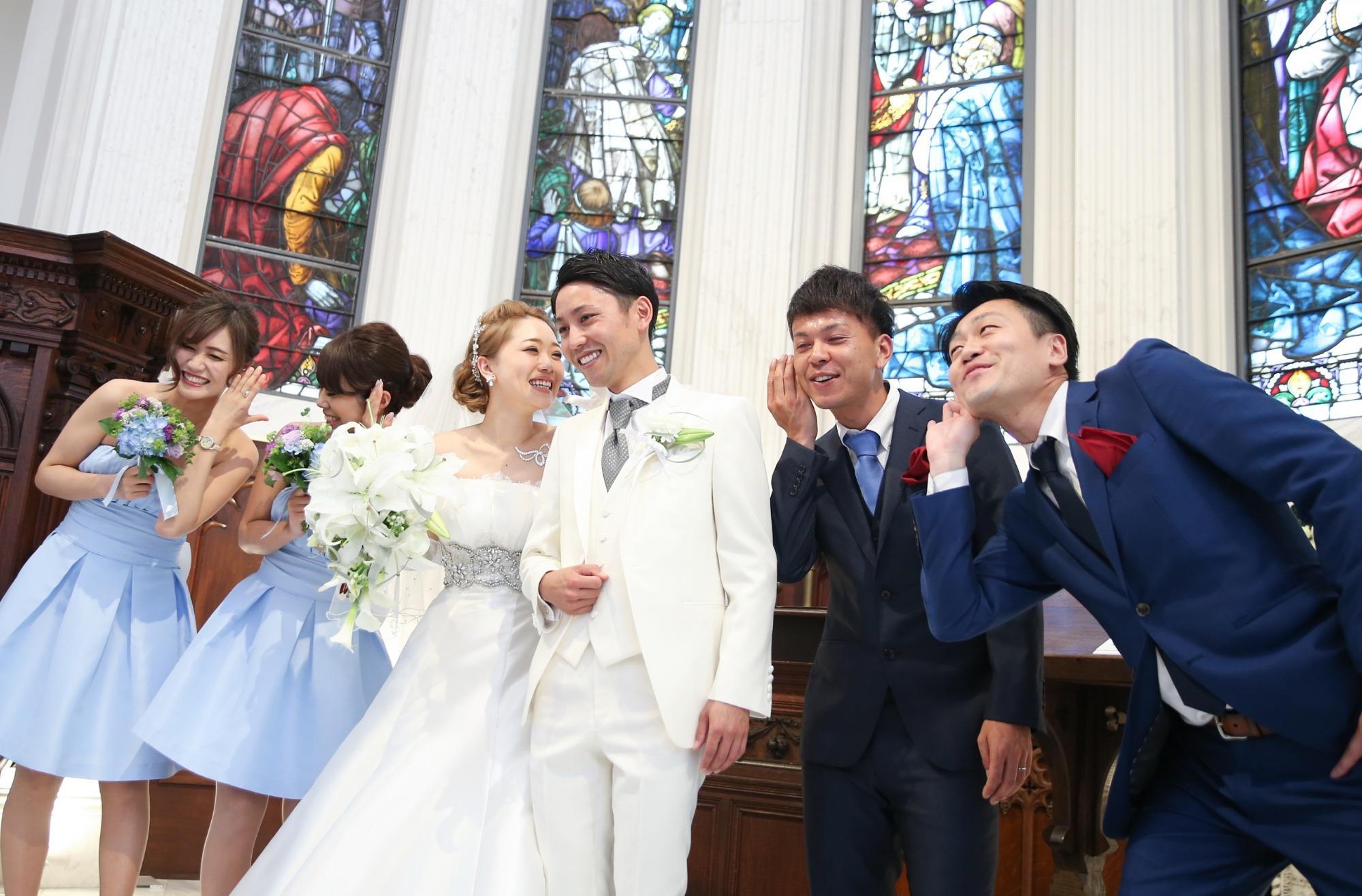 海外に住んでいたことがあるご新婦様のご希望で挙式ではご友人の皆様にアッシャーとブライズメイドを務めていただきました。リハーサルでは、ご友人のお顔をご覧になり、少し緊張もほぐれたご様子。ビデオマンから「新郎新婦様、内緒話してください!ご友人の皆様、耳を傾けてください!」と一言。この一コマが、あとでどのような映像になるのか楽しみです♪