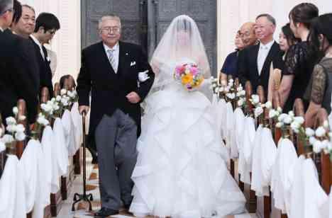 新郎様は甥っ子くん・姪っ子ちゃんとのご入場。しっかり歩いてくれるか心配されていましたが、堂々と先導してくれて新郎様の表情も柔らかく素敵でした。 新婦様のご入場では、お父様が杖を使用しながらのエスコート。最後まで歩けるか不安もありましたが、ウェディングドレス姿の新婦様と嬉しそうに腕組みをすると力強く一歩一歩進まれ、新郎様へバトンタッチされました。皆様も温かく見守って下さり、とても感動的でした。