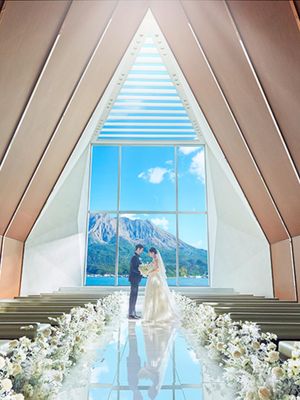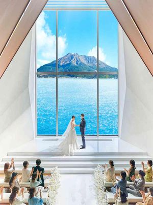 桜島を望む幻想的で美しい誓いの舞台