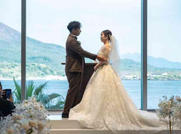 桜島を一望できるチャペルにひとめぼれ