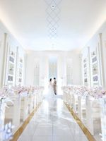 嫁のドレス姿を引き立てるすべてが白で統一された空間は、ピュアなオーラに優しく包み込まれるよう。純白の世界観で、ふたりに挙式以外のことを忘れさせてくれるチャペル。響きわたる聖歌隊の歌声や語りかけるような牧師の言葉が、永遠を祈るのにふさわしい神聖な雰囲気を創る。