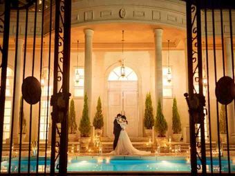 青空と桜島を背景にした、白く輝く外観が印象的な邸宅。プール付きガーデンや大階段を構えた開放的な空間では、デザートビュッフェやナイトパーティなどおふたりのお好みの演出を取り入れてゲストと思いっきり楽しめるひとときを。