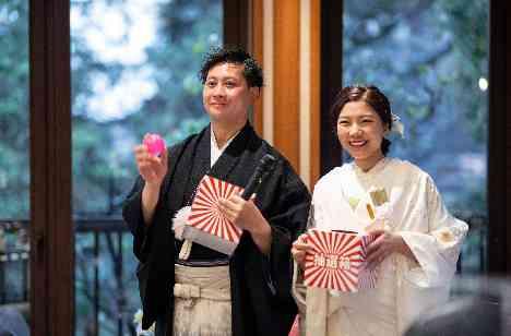 ゲストの方との距離感を大切にされていたお二人。蘇州園をお選びいただいた理由の中の一つに近い距離間でアットホームに過ごせそうだからという理由が入っていました。 当日は大好きなゲストの方々に見守られながらキラキラとした笑顔の絶えない時間が流れていました。 新郎様は元々道に咲いているお花を摘んでプロ―ポーズしたいという夢がございましたのでブーケセレモニーをされていました。