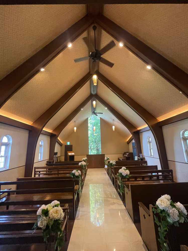 挙式では、生演奏で演奏して頂けるとのことで素晴らしいと思いました。雨天時に屋根がなく傘が必要なことが気になりました。