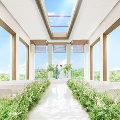 *+自然光ふりそそぐ緑のチャペル+*どこまでも広がる「空×緑×自然光」の織りなす絶景。自然光溢れる開放感あふれるチャペルで憧れの入場体験!扉を開けた瞬間、目の前に広がる絶景を、ぜひ体感して下さい♪