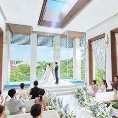 【陽光ふりそそぐ天空のチャペル】どこまでも広がる「空×緑×自然光」の織りなす絶景。自然光溢れる開放感抜群のチャペルで感動の入場体験!扉を開けた瞬間、目の前に広がる絶景を、ぜひ体感して下さい♪