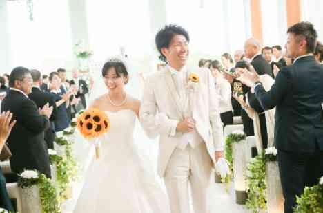 新郎に内緒でアクアテラスでのファーストミートを計画してもらいました。 とても感動していたようでサプライズは成功でした。 天候にも恵まれて拘りのひまわりのブーケがとても映え、 季節感を取り入れた挙式になりゲストから注目を集めました。