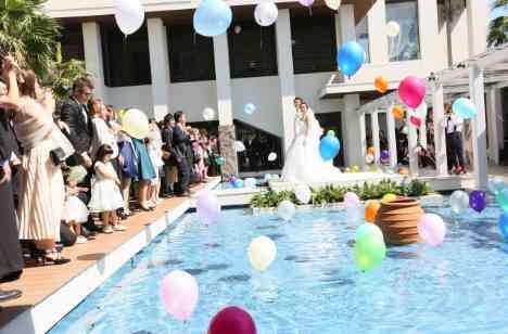たくさんのご参列者様がいらっしゃったため、ひとりひとり全員が楽しめる演出を行ないました。 大きなプールを使用してのドロップ&フライや、ゲストテーブルに手紙のプレゼントなどをサプライズで行ないました◎