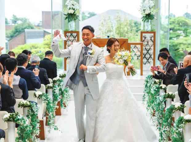 天候悪い中だったが、チャペルに入った時にはそれを感じないほど真っ白で素敵な場所でした。 緊張いっぱいでしたが、プロデューサーをはじめ会場の方がたくさんお祝いの言葉をくれて、笑顔だったおかげで緊張より楽しもうという気持ちになりました。 披露宴では、音響から演出まで想像していたよりもすごくて盛り上がりに驚きました。 たくさんの人数を呼ぶことができ、最高に盛り上がる楽しい式にすることができました。